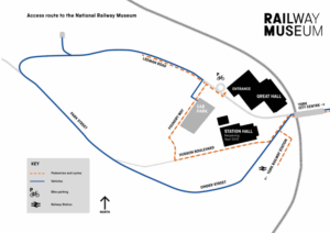 While there is a designated National Railway Museum bus stop, we recommend leaving the bus at Cinder Street. This stop will be closer to our current entrance. From there if needed, cross the street and head along Hudson Boulevard, featuring planting and benches. Turn left when you reach Foundry Way and follow signage towards the main museum entrance.